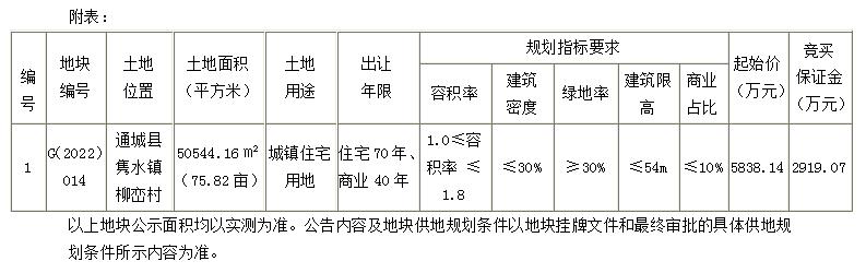 一、公开出让地块的基本情况和规划指标要求(详见附表)。